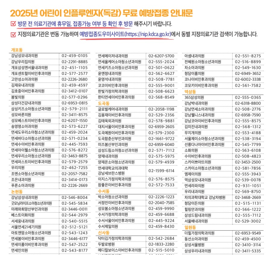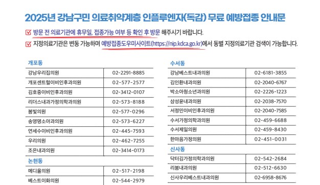 #독감무료접종 #코로나무료접종 #예방접종도우미 #강남구보건소 #강남구병원