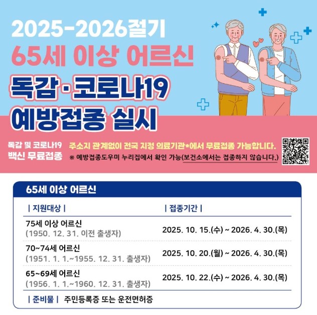 #2025독감예방접종 #코로나무료접종 #어르신예방접종