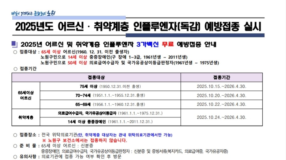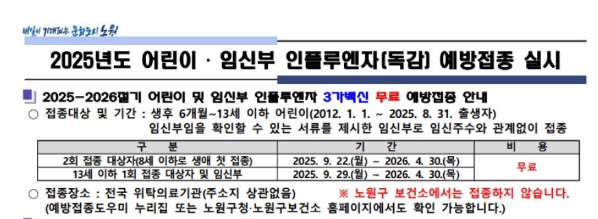 #노원구독감 #노원구예방접종 #2025독감 #독감무료접종