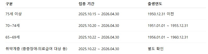 2025년 독감 무료 접종 대상 & 기간