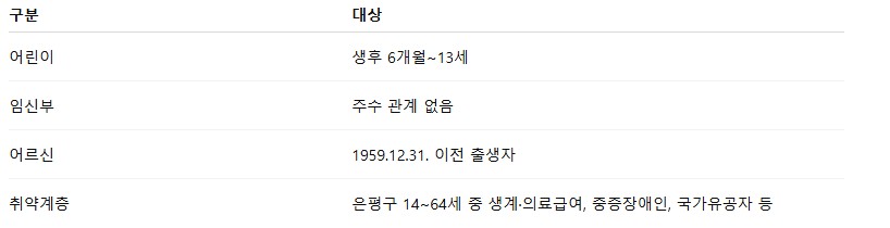 무료 접종 대상
