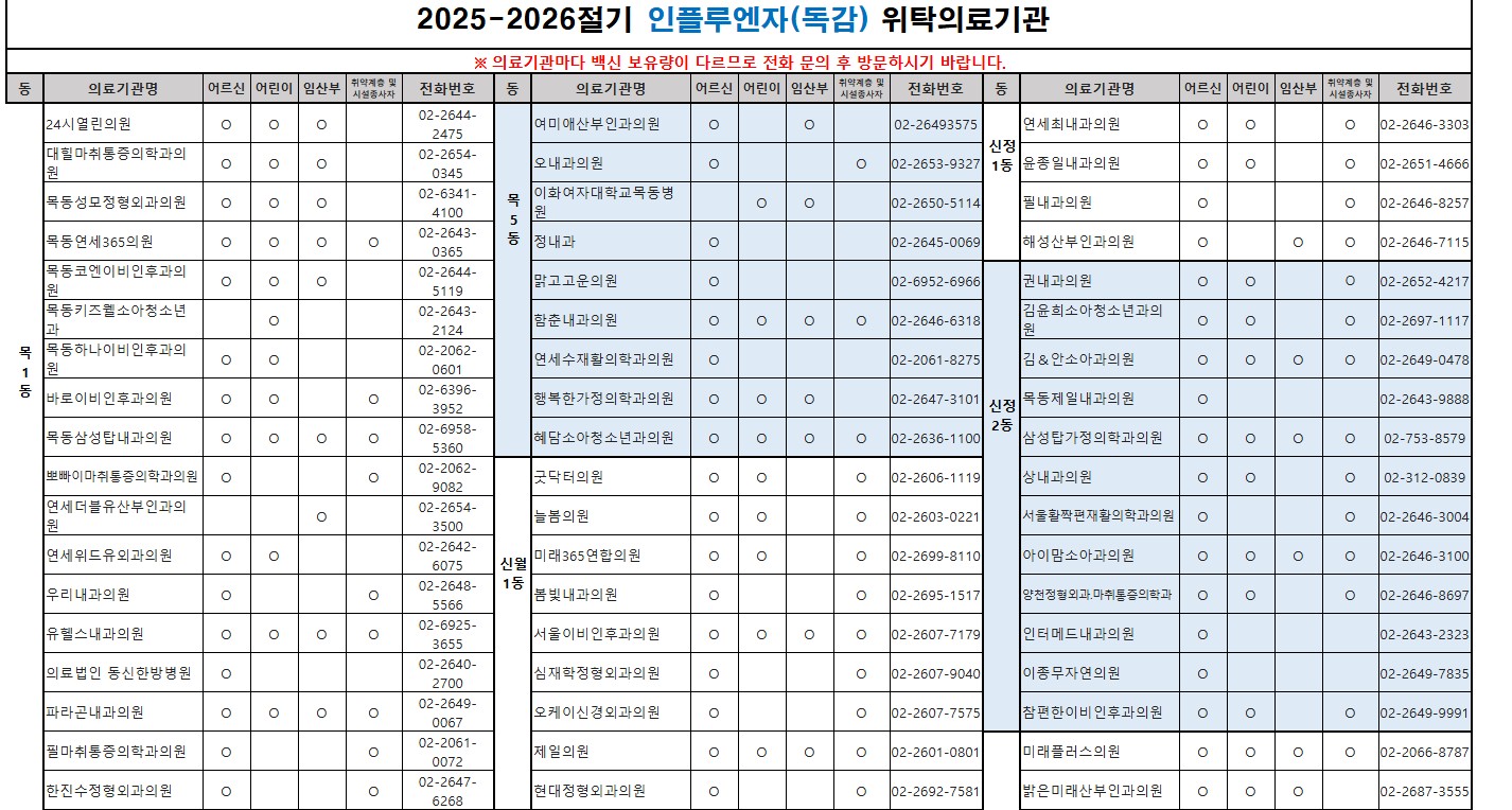 #양천구독감 #양천구예방접종 #2025독감 #2026독감 #무료예방접종