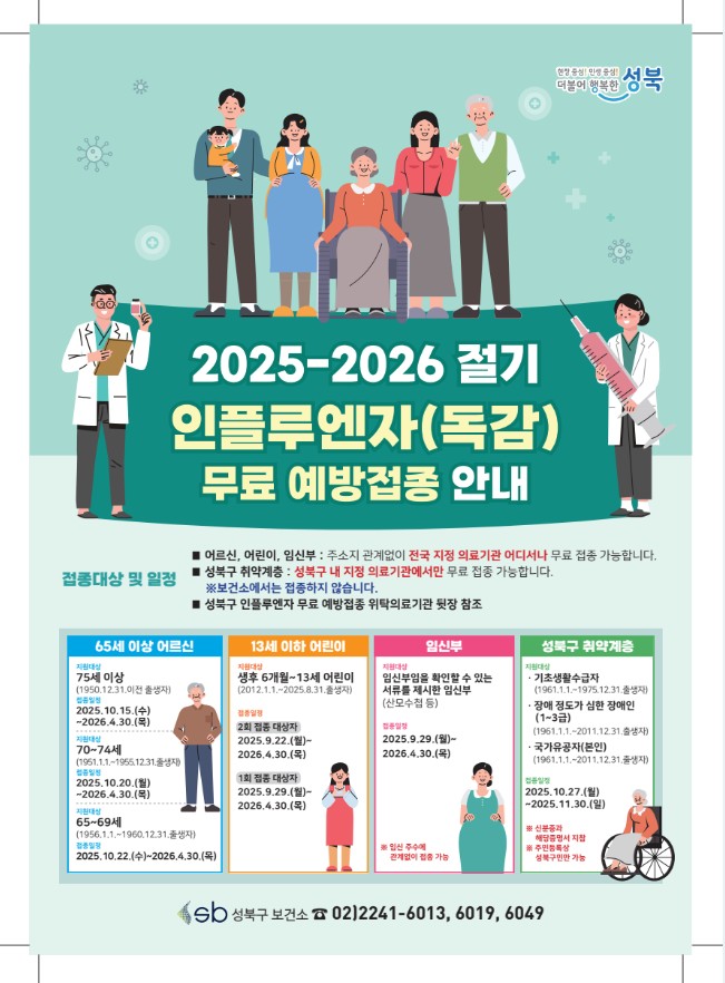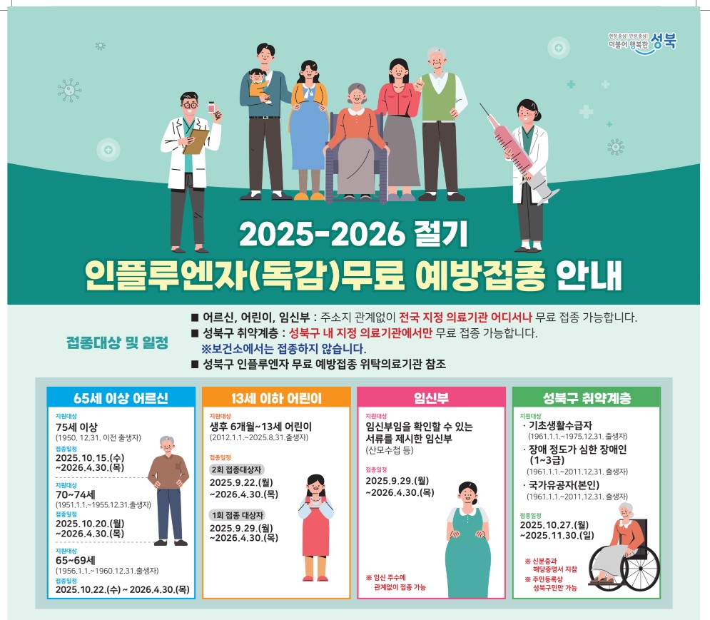 #성북구독감 #성북구예방접종 #독감예방접종 #무료독감 #성북구보건소 #인플루엔자 #2025예방접종 #어르신독감 #어린이독감 #임신부예방접종 #취약계층예방접종 #서울독감 #성북구소식 #가을건강관리 #겨울건강준비