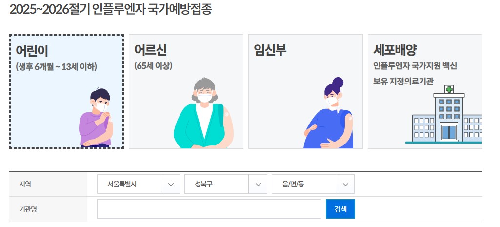 - 어르신·어린이·임신부는 전국 지정 의료기관 어디서나 무료 접종 가능